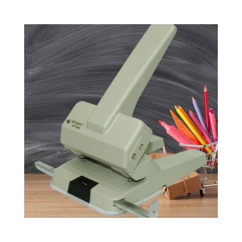 The Kangaro DP-800 Paper Punch Machine is a premium heavy-duty 2-hole punch, designed for professional and large-scale office use. With a punching capacity of up to 40 sheets (75-80 gsm), 6 mm hole diameter, and 80 mm spacing, it ensures precision and durability. Its strong metal body, ergonomic handle, removable chip tray, and adjustable guide bar make it reliable for frequent, high-volume punching.